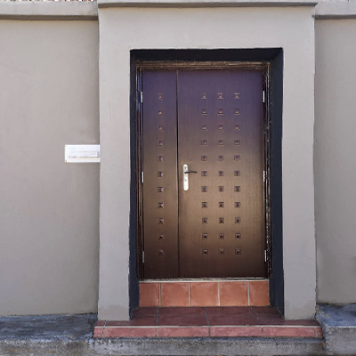 Our doors are constructed with two reinforced steel plates that make up the front and back panel of the door. Inside a reinforced mesh, made from 5mm steel rods, acts as a burglar bar within the door. This provides a further level of security and protection.