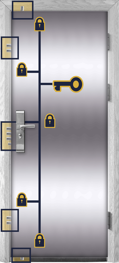 Using substantially thicker steel deadbolts provides greater security with fewer locking points. This increases longer term durability for high use areas while providing exceptional security.
